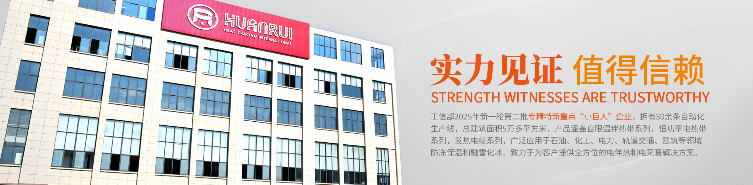 安徽環瑞電熱器材有限公司成立于2007年,注冊資本5080萬元。是集自限溫伴熱帶,恒功率電伴熱、發熱電纜研發、生產、銷售及服務于一體的工信部2025年新一輪第二批專精特新重點“小巨人”企業,2024年度長三角商業創新樣本企業。公司現位于合肥市肥東縣經濟技術開發區占地56畝,總建筑面積5萬多平方米。