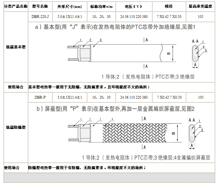 DBR-J 基本型電熱帶一般用于無防爆、無防腐要求,且環境濕度不大的場所;