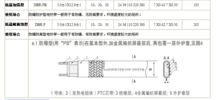 2.工業性電伴熱帶帶寬12mm-13.5mm ,具體參照上述結構對照表