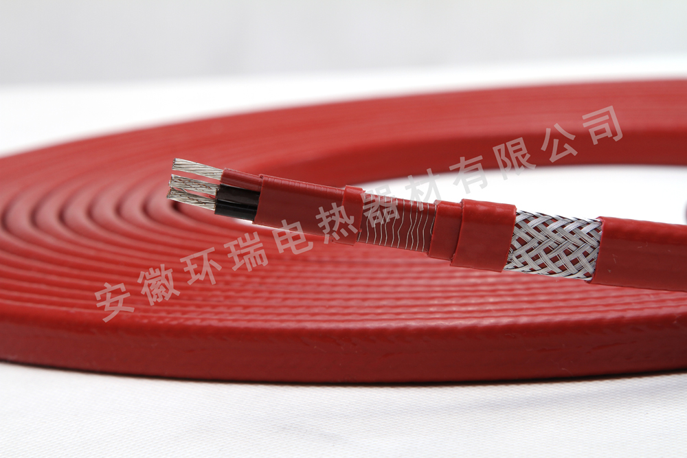 電伴熱帶主要分為自限溫和恒功率兩種。恒功率產(chǎn)品中有一種三相恒功率電伴熱帶,包括有三個電纜內(nèi)芯,其特征在于:每個電纜內(nèi)芯分別由一根金屬導(dǎo)線組成,每根金屬導(dǎo)線外分別包覆有一根金屬導(dǎo)線組成,每根金屬導(dǎo)線外分別包覆有芯線絕緣層氟塑料;兩個電纜絕緣層外依次包覆有發(fā)熱絲、骨架層、絕緣護套氟塑料、金屬屏蔽網(wǎng)和加強防腐外套氟塑料。這種實用新型電伴熱帶溫度均勻,保溫效果好,安全可靠。這種新型三相恒功率電伴熱帶保證了電伴熱帶溫度的均勻和高效的熱轉(zhuǎn)化率,它可適用于長距離,大口徑管道的伴熱和保溫。