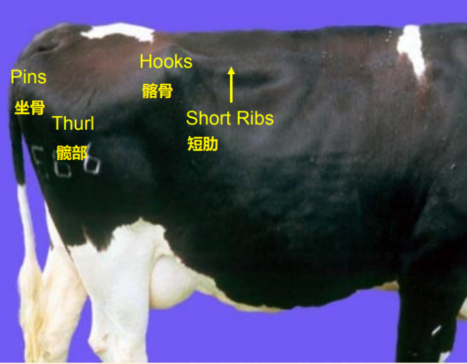 固定的評分方向,從奶牛后側(cè)和右側(cè)評估,減少瘤胃充盈度對體況評分的影響。